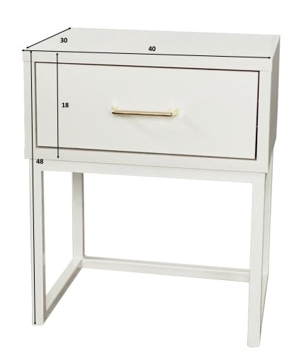 Szafka nocna Loft biała ze złotym uchwytem to uniwersalny produkt, który wpasuje się w niemal każdy styl. Kolorystyka szafki sprawi że wnętrze będzie wyróżniać się oryginalnością. Dzięki projektowi inspirowanego loftowym designem Twoja sypialnia, przedpokój, salon nabiorą funkcjonalności oraz wyjątkowości. Zastosowanie jednego koloru korpusu i ręcznie wykonanego stelażu to klucz do lekkiego, zgrabnego a zarazem eleganckiego look’u.
