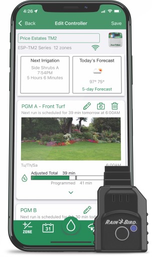 Po zainstalowaniu na urządzeniu mobilnej aplikacji z interfejsem użytkownika aplikacja ta umożliwi zdalną konfigurację wielu sterowników nawadniania. Dostępne są opcje harmonogramu nawadniania oraz dostęp do informacji o bieżących warunkach pogodowych.