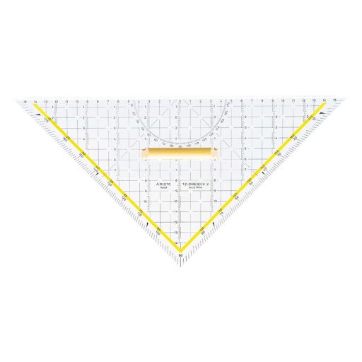 Profesjonalna ekierka techniczna z drewnianym uchwytem od austriackiej firmy ARISTO. Długość przeciwprostokatnej 325mm. Krawędzie odpowiednio wyprofilowane do wygodnego kreślenia tuszem jak i ołówkiem bez obawy o rozmazanie kreślonych linii. Naniesiona siatka linii co 10mm prostopadłych do przeciwprostokatnej oraz podziałka kątowa wspomagają kreślenie perspektywiczne.