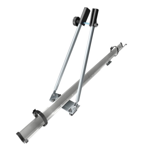 Praktyczny aluminiowy (z elementami ze stali i tworzywa) uchwyt do przewożenia rowerów przeznaczony jest do montażu na bagażniku dachowym auta (belkach).