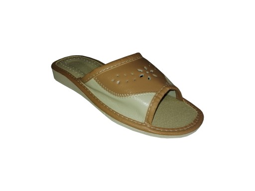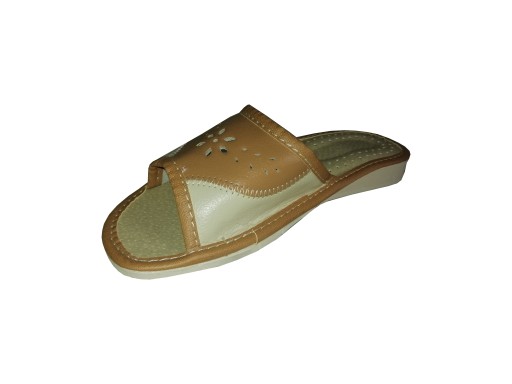 Pantofle wykonane są z wysokiej jakości skóry ekologicznej, łatwej w utrzymaniu w czystości.