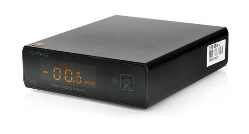 E30 to przetwornik cyfrowo - analogowy DAC marki Topping. Urządzenie zostało wyposażone w przetwornik AKM AK4493 oraz układ XMOS XU208. E30 obsługuje pliki DSD512 i PCM 768kHz 32bit. Na tylnym panelu urządzenia odnajdziemy wejście koaksjalne oraz optyczne, a także złącze USB i analogowe złącza 2xRCA.