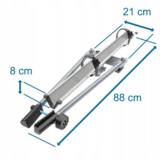 Możliwość złożenia bagażnika do wymiarów 88 cm x 21cm x 8 cm pozwala wygodnie przewozić go w bagażniku samochodu.