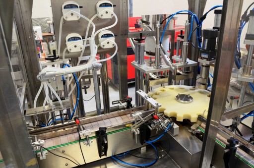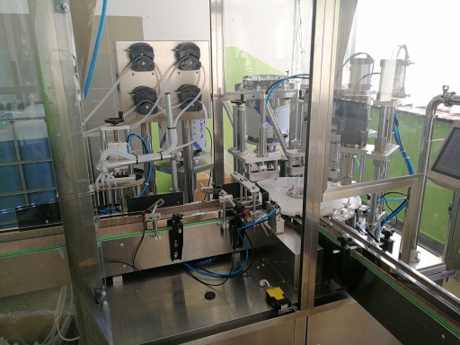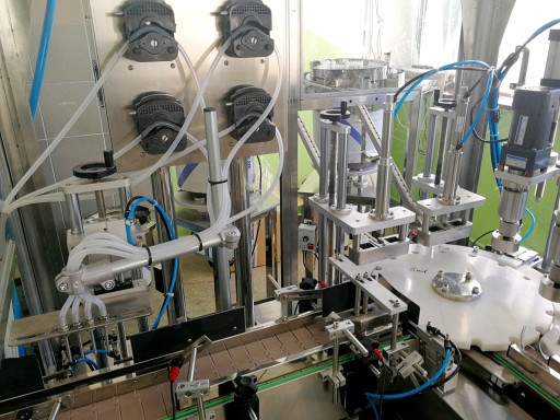 - automatyczna linia nalewająca na pompach perystaltycznych: 4 głowice nalewające