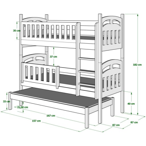 ŁÓŻKO PIĘTROWE - ZUZIA PIĘTROWA Z WYSUWEM 160x80/150x80