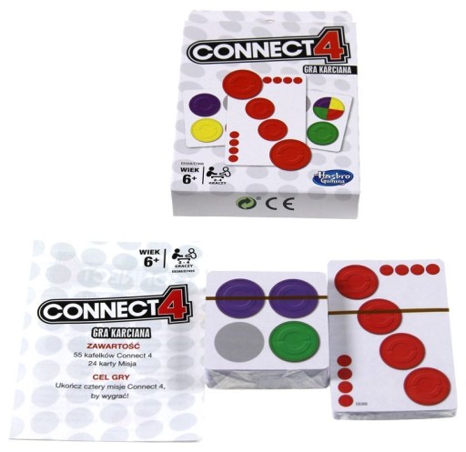 Connect 4 - klasyczna gra, w której układasz 4 elementy w jednym rzędzie - teraz jako szybka gra karciana! Spróbuj ułożyć cztery elementy w jednym rzędzie. Staraj się przeszkadzać swojemu przeciwnikowi, poprzez blokowanie jego ruchów i uważaj, by on nie zablokował twoich. Korzystaj z dodatkowych mocy podczas swojej tury. Gracz, który jako pierwszy ukończy cztery misje - wygrywa!
