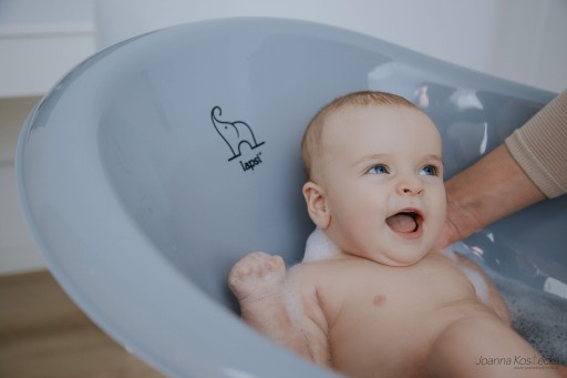 Wanienka Lapsi z serii Słonik w kolorze szarym doskonale sprawdzi się podczas kąpieli niemowląt jak i starszych dzieci.