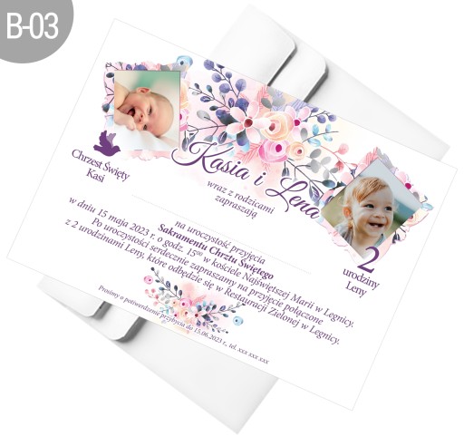 Zaproszenie na chrzest, roczek i urodziny ze zdjęciem - przyjęcie z dwóch okazji.