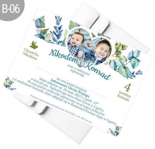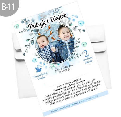 Kolekcja wzorów zaproszeń na przyjęcie z dwóch okazji: Chrztu Świętego i urodzin. Idealne na Chrzest i celebrowanie roczku dziecka, urodzin rodzeństwa lub mamy i taty.