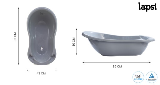 Wanienka Lapsi z serii Słonik w kolorze szarym doskonale sprawdzi się podczas kąpieli niemowląt jak i starszych dzieci.
