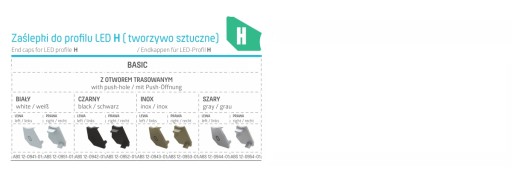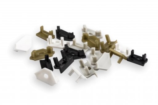 Dedykowane zakończenia dekoracyjne do profilu z tworzywa sztucznego.