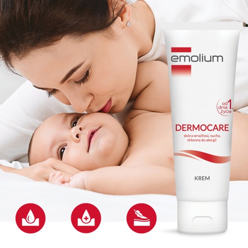 Emolium Dermocare Krem stworzyliśmy specjalnie z myślą o wrażliwej i skłonnejdo alergii skórze dzieci i niemowląt od 1. dnia życia. Zapewnia skórze nawilżenie i jak najlepszą ochronę, poprzez odbudowę i wzmocnienie naturalnej bariery lipidowej.