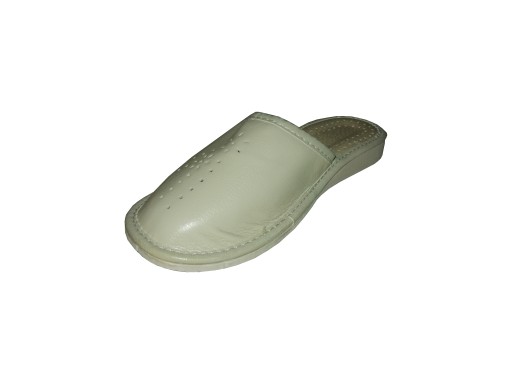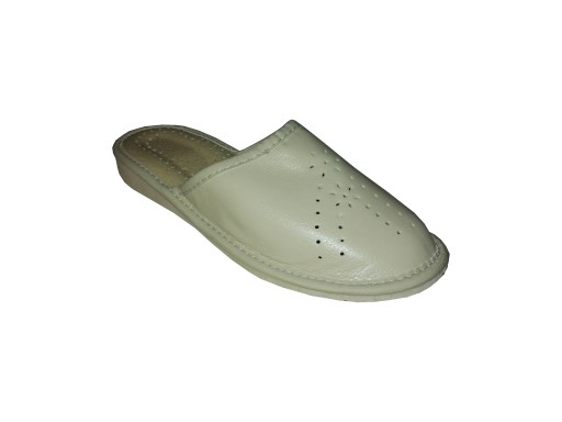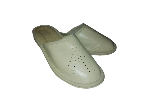 Pantofle wykonane są z wysokiej jakości skóry ekologicznej, łatwej w utrzymaniu w czystości.