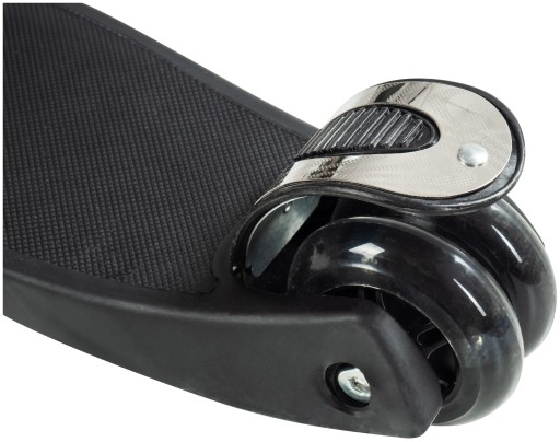 W hulajnodze zamontowano dwa koła przednie i jedno podwójne koło tylne.