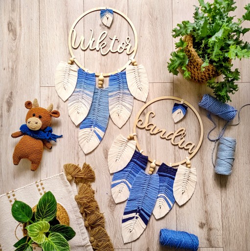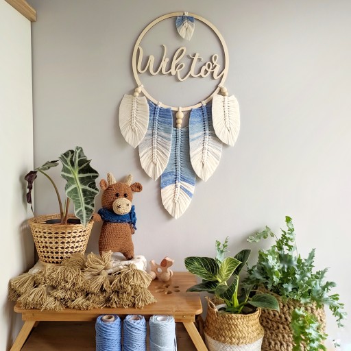 ловец снов макраме перья листья имя синий