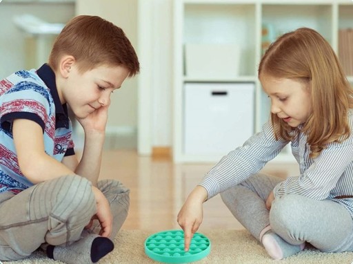 - bąbelki - ich naciśnięcie generuje delikatny trzask jak w przypadku pstrykania folią bąbelkową. Po wyciśnięciu całej powierzchni wystarczy odwrócić zabawkę i klikać od nowa