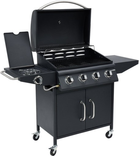 Wyposażony w 4 palniki główne i 1 boczny o łącznej mocy 16kW. Półki boczne oraz pojemna, zamykana szafka ułatwią przechowywanie przypraw i niezbędnych akcesoriów.