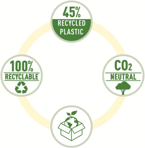Wysokiej jakości wytrzymały i niezawodny dziurkacz wykonany w 45% z plastiku pochodzącego z recyklingu i w 100% nadający sie do ponownego przetworzenia.