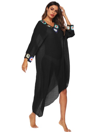 ПАРЕО для пляжа, туника ПЛАТЬЕ, ВЫШИВКА, воздушное, БОХО