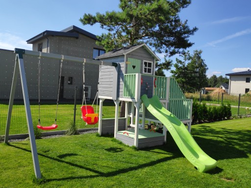 - Dzięki możliwości wyposażenia domku w ślizg możesz stworzyć dla swego dziecka cały plac zabaw, którego domek będzie centralną częścią
