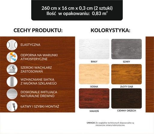 Uwaga! W ogłoszeniu sprzedawana jest tylko LAZURA DO DESKI ELEWACYJNEJ! Do montażu potrzeba: