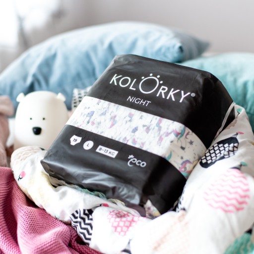 Kolorky DAY Maziajki to jednorazowe pieluszki, które powstały z dbałości o zdrowie dzieci i z troski o środowisko. To wyrazisty i oryginalny design uzyskany za pomocą bezpiecznych farb wodnych, który tworzy piękne chwile nawet podczas zwykłej zmiany pieluszki. Kolorky Day występują w kilku wzorach, w rozmiarach S - XL. Proces ich bielenia odbywa się za pomocą metody TCF (total chlorine free). Nie zawierają szkodliwych substancji takich jak ftalany, PVC, lateks i chlor. Dzięki niezwykłej przepuszczalności powietrza oraz nietkanym, ekologicznie czystym materiałom, idealnie nadają się do bardzo wrażliwej skóry. Kolorky DAY ulegają biodegradacji w 73-77%, w zależności od rozmiaru pieluchy.