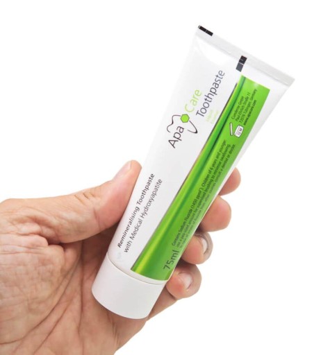 Pasta do zębów ApaCare skutecznie odbudowuje ubytki w szkliwie i wspomaga usuwanie przebarwień. Zawarte w produkcie cząsteczki wapnia i fosforu tworzą na powierzchni zębów barierę przeciwbakteryjną, dzięki której zęby stają się odporniejsze na negatywne działanie bakterii, kwasów z pożywienia oraz osadzanie się płytki nazębnej.