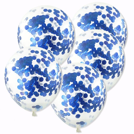 7. Balony gumowe z konfetti niebieskim - 5 szt.