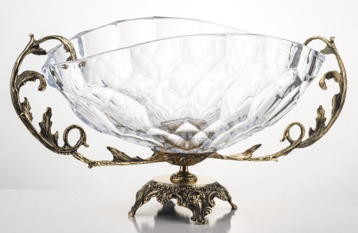 Unikalna patera kryształowa, wykonana przez renomowaną czeską Bohemię. Konstrukcja opiera się na solidnym mosiądzu wybarwionym w kolorze złota.