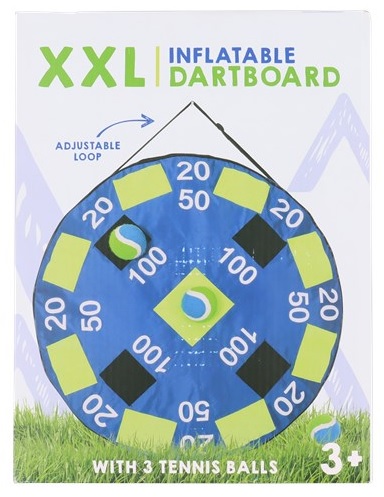 Poręczna, nadmuchiwana, materiałowa (polyester) tarcza do gry w rzutki 'rzep'.