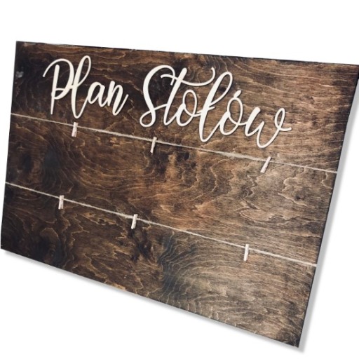 W zestawie z drewnianą tablicą dołączamy również jutowy sznurek oraz spinacze, które pomogą umieścić na planie kartki z imionami.