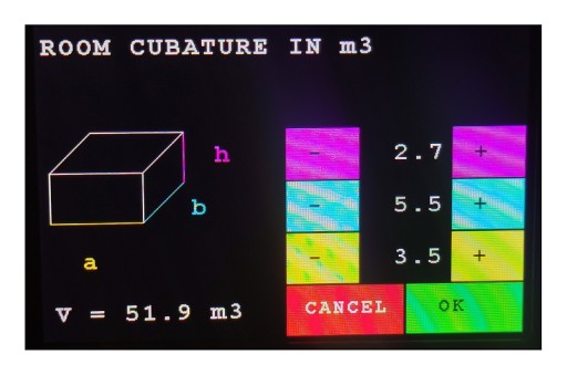 - automatyczne obliczanie parametrów ozonowania na podstawie zadanej kubatury pomieszczenia