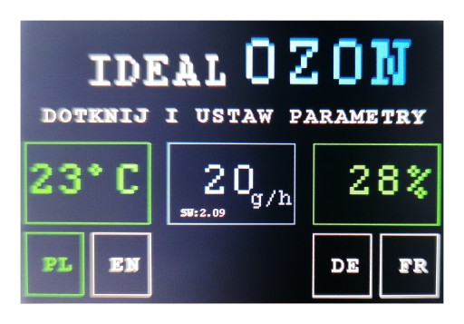 Ekran ustawień - ozonator
