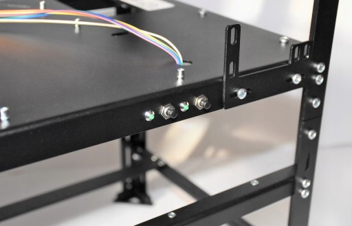 Zainstalowane dwa włączniki typu reset, model MS60 oraz dwie kontrolki LED model ML60. Części te dostępne są na pozostałych naszych aukcjach. Włączniki pracują jako POWER SWITCH oraz RESET SWITCH, natomiast diody odpowiednio jako POWER LED oraz HDD LED. Dioda HDD LED mrugając informuje nas czy komputer pracuje i czy przypadkiem się nie zawiesił. Bardzo przydatne przy wydobywaniu kryptowalut.