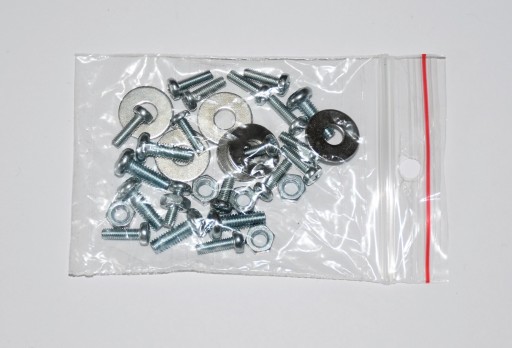 Opakowanie zawiera zestaw śrub do zmontowania obudowy oraz zestaw śrub do przykręcenia płyty głównej oraz kart graficznych.