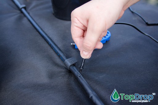 3️⃣ W skład zestawu Top Drop wchodzi przebijak, za pomocą którego należy wykonać otwory w rurze zasilającej, a następnie zamontować w nich kroplowniki.