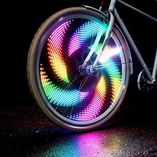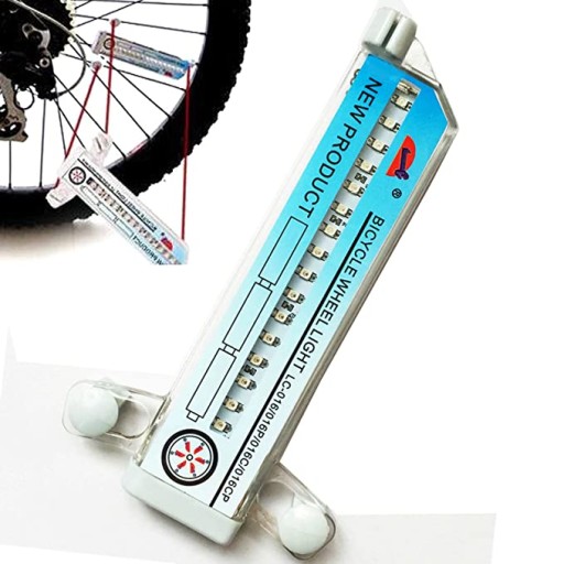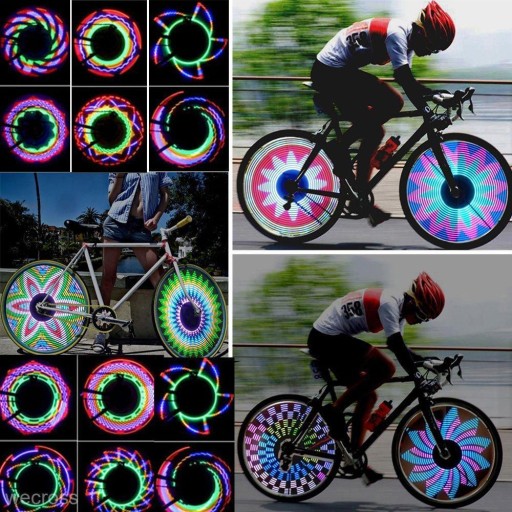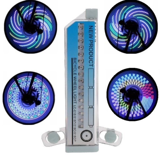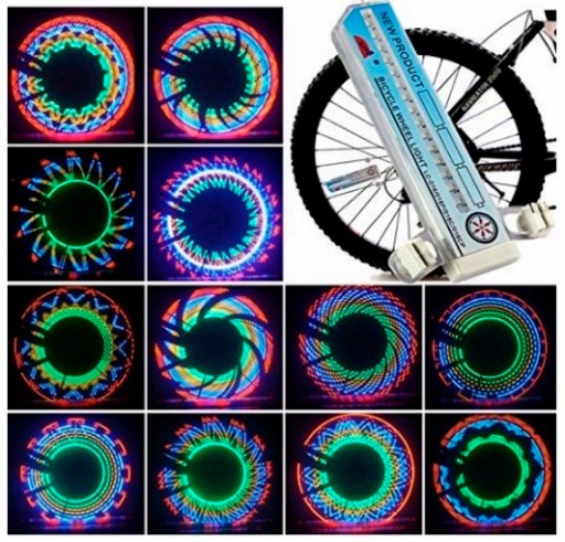 - Ruch koła powoduje włączenie lampki na szprychy, która poprzez różne sekwencje diód led wyświetla na kręcącym się kole różne wzory.
