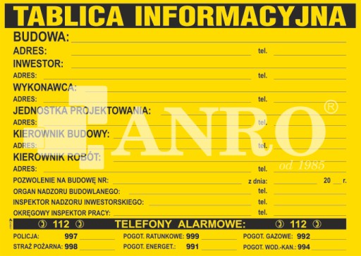 TABLICA INFORMACYJNA 500x700mm PCV 0,6mm