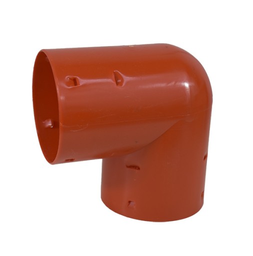 Kolano drenarskie wykonany z PVC-U służy do łączenia rur denarskich o średnicy 50 mm, jest w kolorze pomarańczowym.