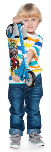 Hulajnoga dziecięca została ozdobiona zabawnym stylem z ulubionym motywem bajki AVENGERS. Hulajnogę można łatwo złożyć, w tym uchwyty, dzięki czemu nie zajmuje dużo miejsca podczas przenoszenia. Pod względem właściwości jezdnych zachwyci zastosowanie, lekkiej aluminiowej ramy i hamulca nożnego. Hulajnoga ma możliwość regulacji wysokości kierownicy, dzięki czemu można ją dostosować do wzrostu dziecka, dzięki czemu jazda będzie jak najbardziej komfortowa dla Twojej pociechy. Kolejną zaletą są miękkie uchwyty kierownicy wykonane z wygodnego piankowego materiału, który dobrze trzyma się w dłoni, a także antypoślizgowy bieżnik.