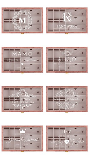✔️ Personalizowany grawer: Możliwość indywidualnego graweru dodaje naszej szkatułce osobisty charakter, czyniąc ją idealnym prezentem dla mamy, żony, dziewczyny, córki czy przyjaciółki.