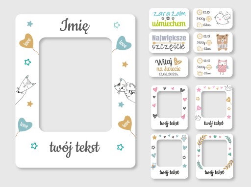 Foto ramka z metryczką, mini ramki i karty z tekstami uatrakcyjnią sesję zdjęciową nadając jej niepowtarzalny charakter.
