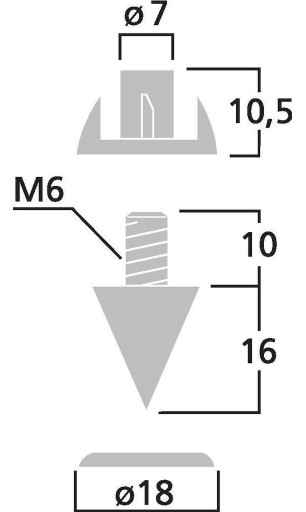 Wysokiej jakości, uniwersalny, kolec pod kolumny, o gwincie M6. Kolec, oraz podstawka są bardzo wytrzymałe. Podstawka zabezpiecza przed zarysowaniem podłogi.