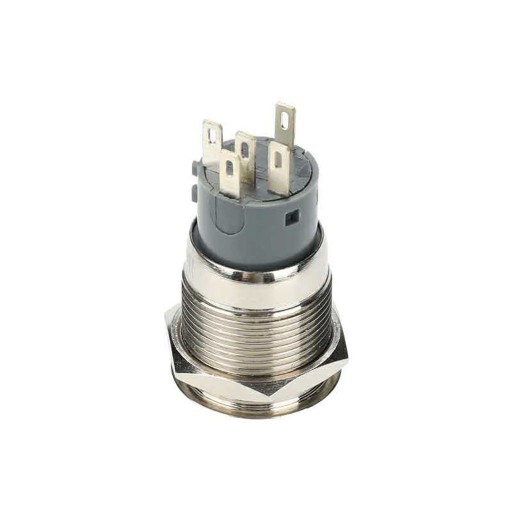Wandaloodporny metalowy przycisk z podświetleniem pierścieniowym. Średnica otworu montażowego 19 mm.