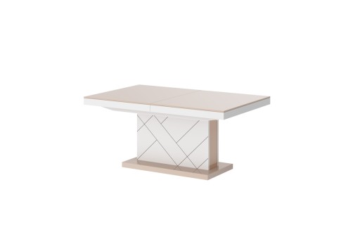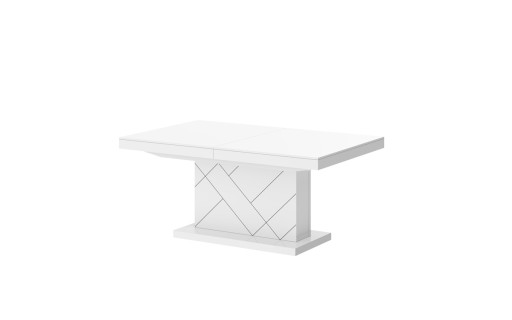 Ławostół MATERA MAX to nowoczesny mebel 2 w 1, który charakteryzuje się prostotą designu (elegancka kolumna pod blatem z nowoczesnym graficznym wzorem i bocznym pasem w kolorze blatu i podstawy), najwyższą jakością wykonania i wymiarami standardowej ławy, którą dzięki funkcji rozkładania i podnoszenia (płynna regulacja wysokości ławostołu od 55,5 cm do standardowej wysokości stołu tj. do 75 cm) w krótkiej chwili można zmienić w pełnowymiarowy stół. Dzięki temu mebel ten znajduje swoje zastosowanie nawet w najmniejszych przestrzeniach mieszkalnych, w których brakuje miejsca na oddzielną jadalnię. Rozkładanie ławostołu jest niezwykle szybkie, proste i lekkie, nie wymaga żadnego wysiłku fizycznego.