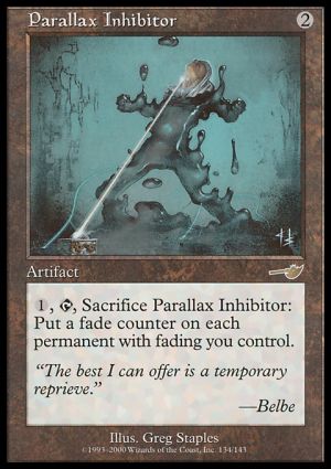 {1}, {T}, Sacrifice Parallax Inhibitor: Put a fade counter on each permanent with fading you control.