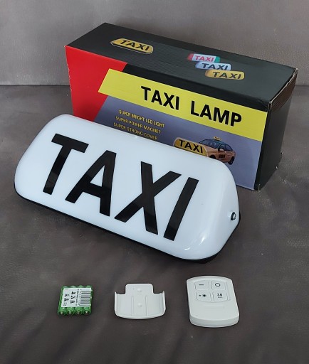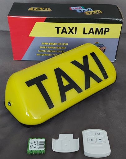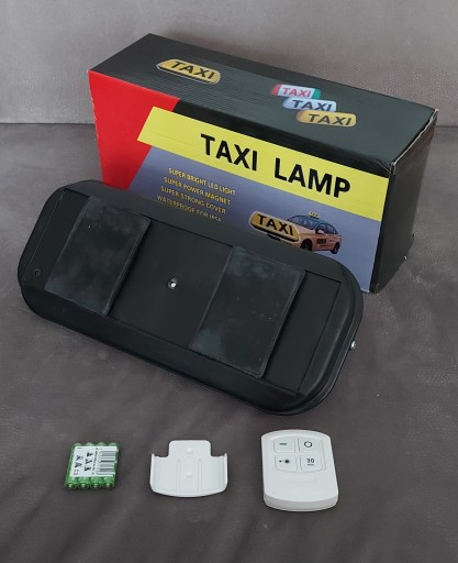 W ZESTAWIE ZNAJDUJE SIĘ FABRYCZNIE NOWA LAMPA TAXI WRAZ Z PILOTEM ORAZ BATERIAMI