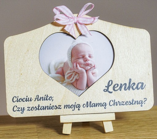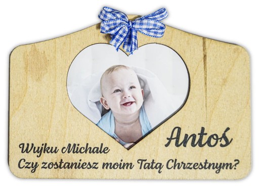 Prośba o bycie Chrzestnym wykonana jest ze sklejki drewnianej.