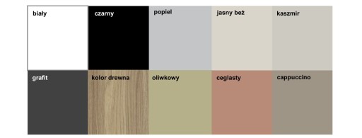 Potrzebujesz inny kolor szafki? Wybierz kolor z poniższej palety i napisz nam o tym w "uwagach" przy składaniu zamówienia, a my wykonamy mebel z wybranego przez ciebie dekoru.