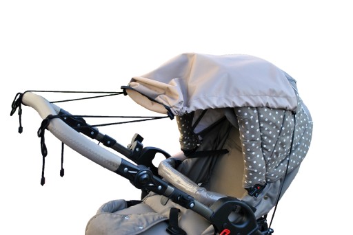 Daszek wykonany jest z impregnowanej i atestowanej tkaniny stosowanej do produkcji wózków dziecięcych.